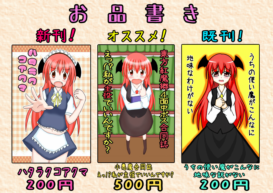 小悪魔がメイドになる話と、以前広島のイベントで出したコピー本をちょっと修正したやつの2本立てとなっております。