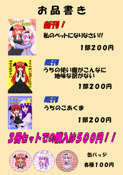 ちなみに左にあるのは当日サークルに飾るお品書きです。