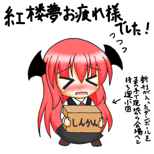 言葉が足らなすぎるので解説を。①は今回頒布用の本なり缶バッジをダンボールに詰め込んで香川から会場まで素手で運んでたんですけど、正直甘く見ていました…。ええ、まさに↑の図のような感じです。行きは体力があったからまだよかったんですが、帰りはイベントでへとへとになった状態で担いでたのでもはや罰ゲーム状態。当然次の日は二の腕が筋肉痛になりました。ホント次はキャリーカート買おう…。